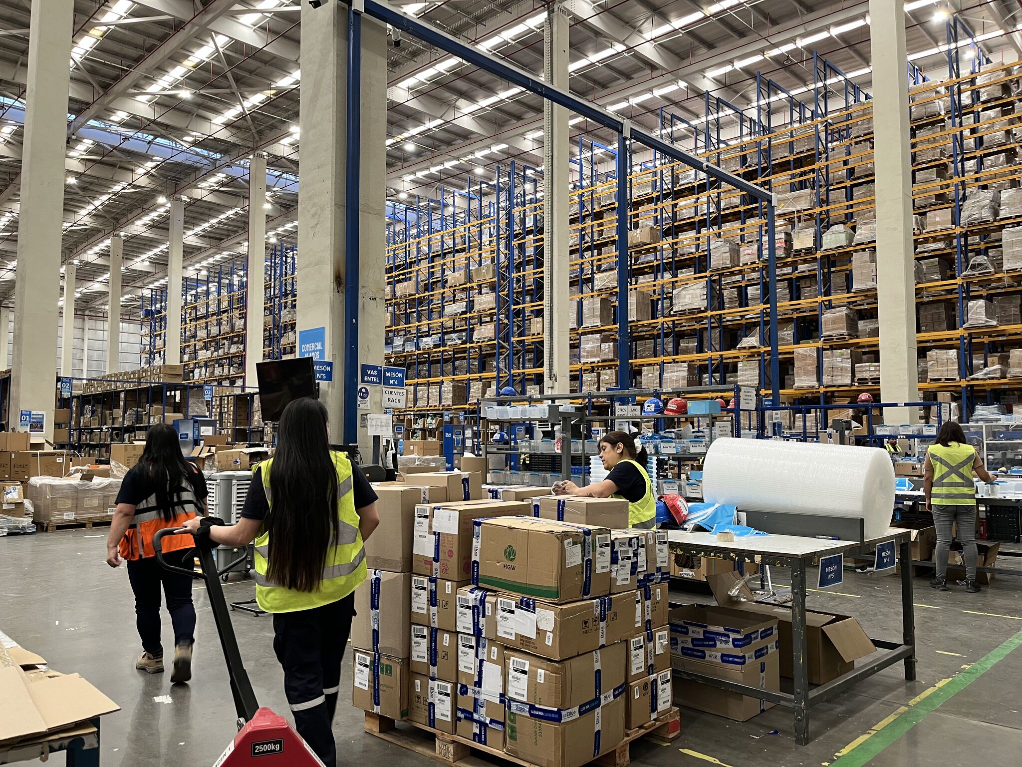 Este miércoles 03 de diciembre, miembros de la Cámara de Comercio de Santiago (CCS) realizaron una visita al centro de distribución de Blue Express, encabezada por Olivier Paccot, gerente general de la compañía. El recorrido permitió conocer en detalle el funcionamiento de su red logística, su sistema de automatización y las diferentes innovaciones que dan soporte al crecimiento del comercio electrónico en Chile.