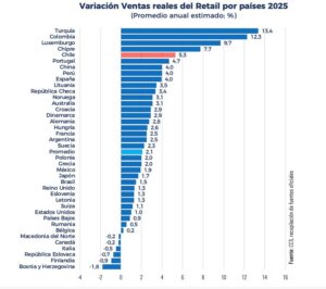 El mercado minorista local, además, se ubica entre los de mejor desempeño a nivel internacional, si bien otra plaza de la región que cuenta con importante participación de capitales chilenos (Colombia), alcanzó resultados aún superiores (12%).
