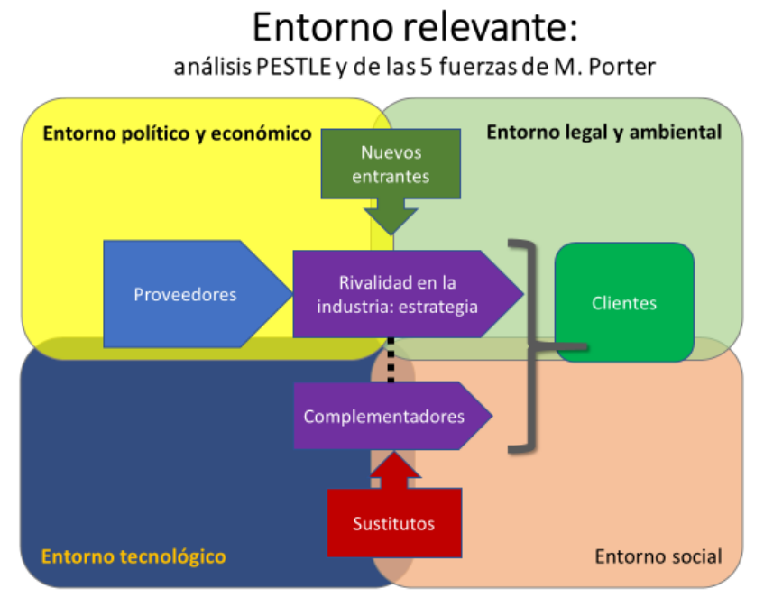El modelo de análisis que subyace en este informe obedece a ciertos principios de la inteligencia competitiva, una especialidad de apoyo a la función estratégica que consiste en recoger y analizar información pertinente para la toma de decisiones para anticiparse a la acción de competidores y sustitutos. En este caso, aquellos que podrían amenazar el dominio de la industria bancaria en las transacciones a nivel de consumidor. El cuestionario fue elaborado considerando el esquema tradicional de las cinco fuerzas de Porter sobre un esquema de análisis PESTLE de factores tecnológicos, económicos, sociales, tecnológicos, legales y medioambientales2. El esquema se reproduce abajo.