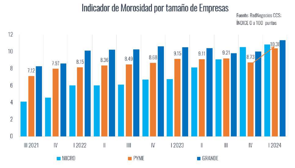 En este caso las grandes empresas alcanzan solo 17 puntos, mientras que las micro y pequeñas empresas registran 8 puntos, generando la menor brecha absoluta (9 puntos porcentuales), pero también los niveles más bajos de desarrollo institucional.