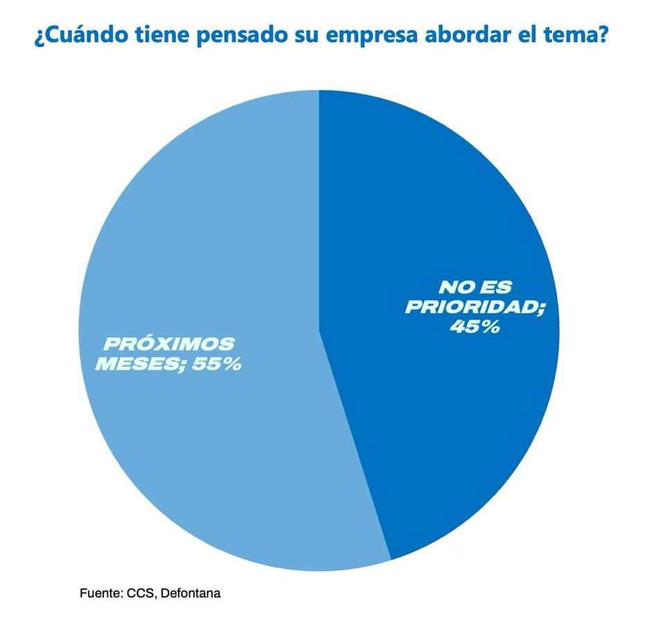 El sentido de urgencia ante la necesidad de implementar modelos de prevención del delito no está claramente difundido. Un 45% de las empresas que no lo ha hecho declara que no se trata de una prioridad, mientras que el restante 55% planea implementarlos en los próximos meses.