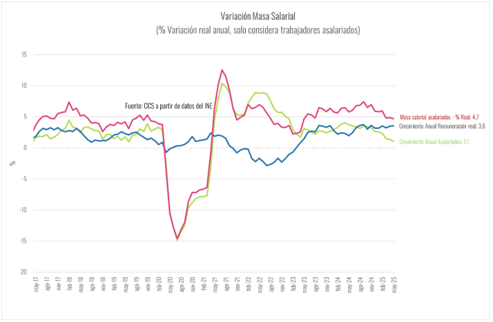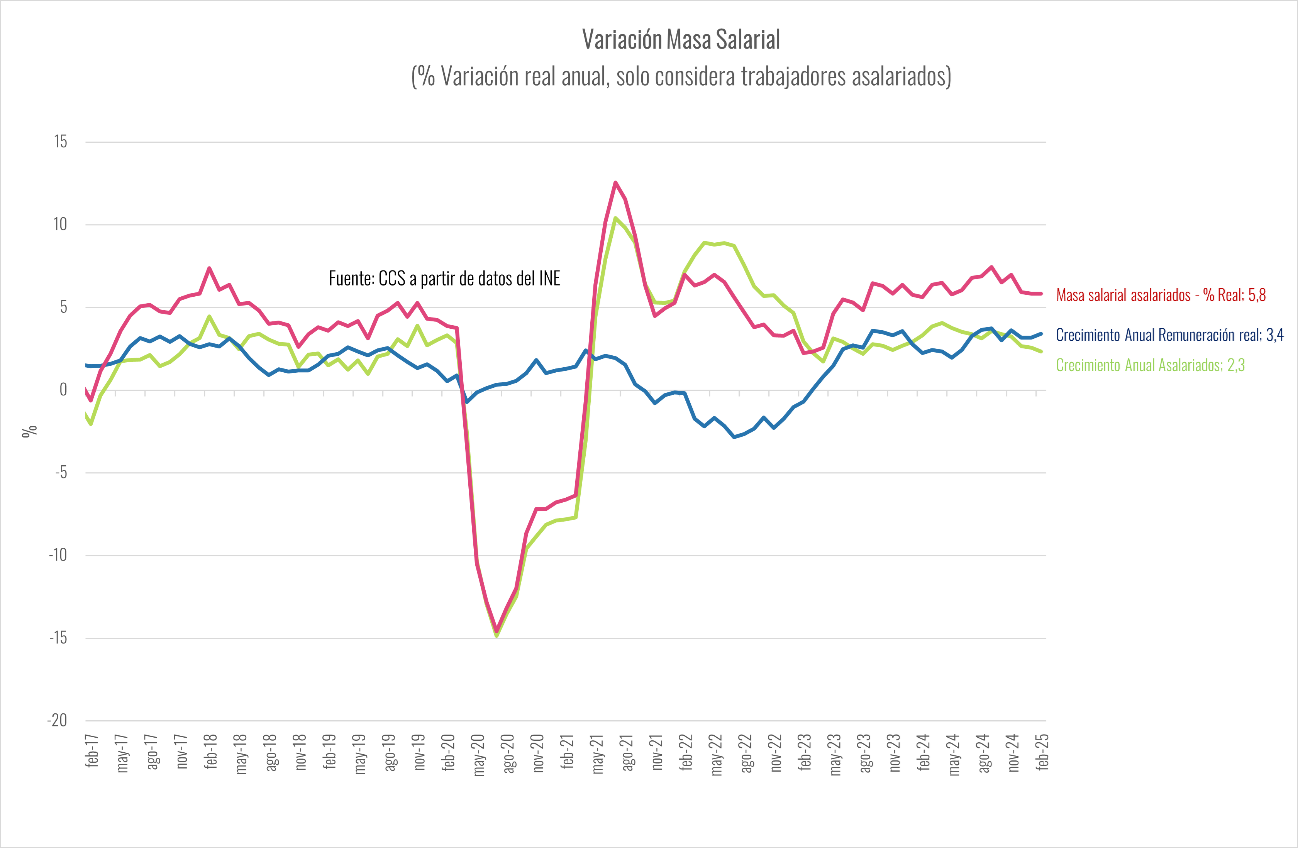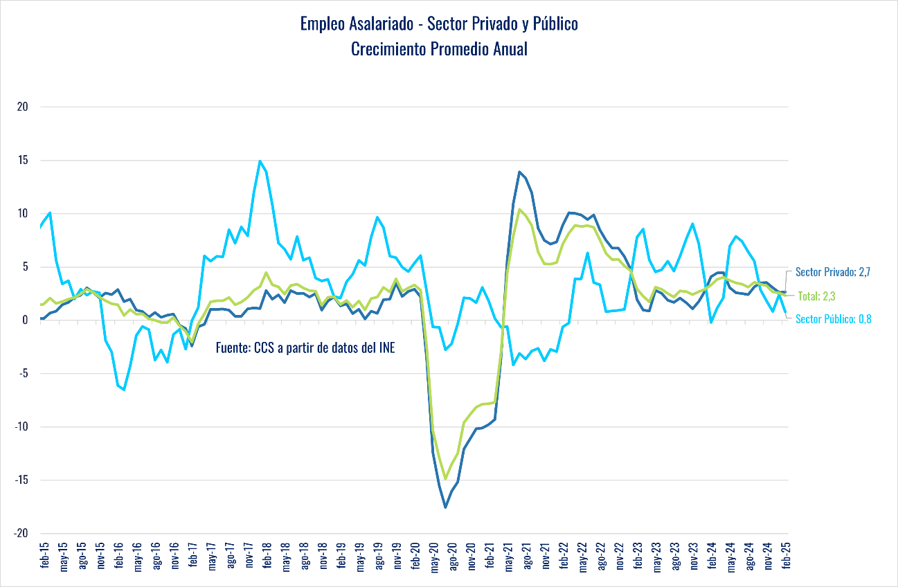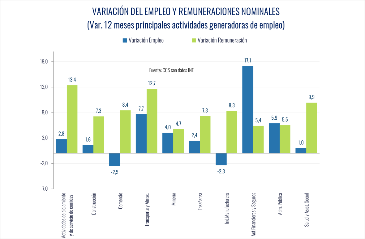 De acuerdo a estimaciones de la CCS, en la actualidad la economía tiene un déficit de entre 400 y 500 mil empleos en relación a las cifras que indican su trayectoria histórica. La brecha que se ha abierto entre la evolución de la actividad económica y el empleo en los últimos 5 años ha tendido a ampliarse en los últimos meses y todo indican que seguirá esta tendencia en los próximos trimestres.