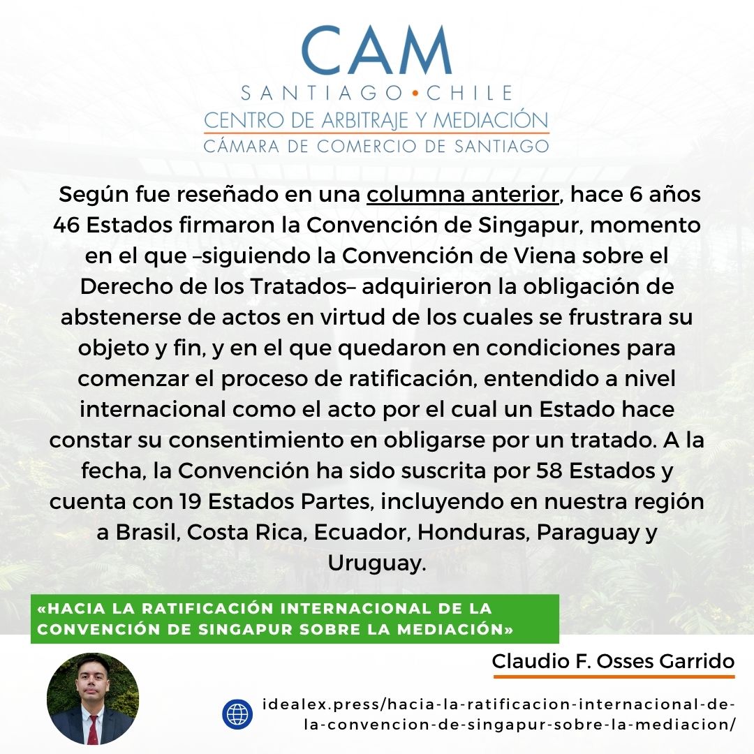 • Columna Claudio F. Osses Garrido – La Convención de Singapur sobre la Mediación: Oportunidad de Impulsar el Diálogo.