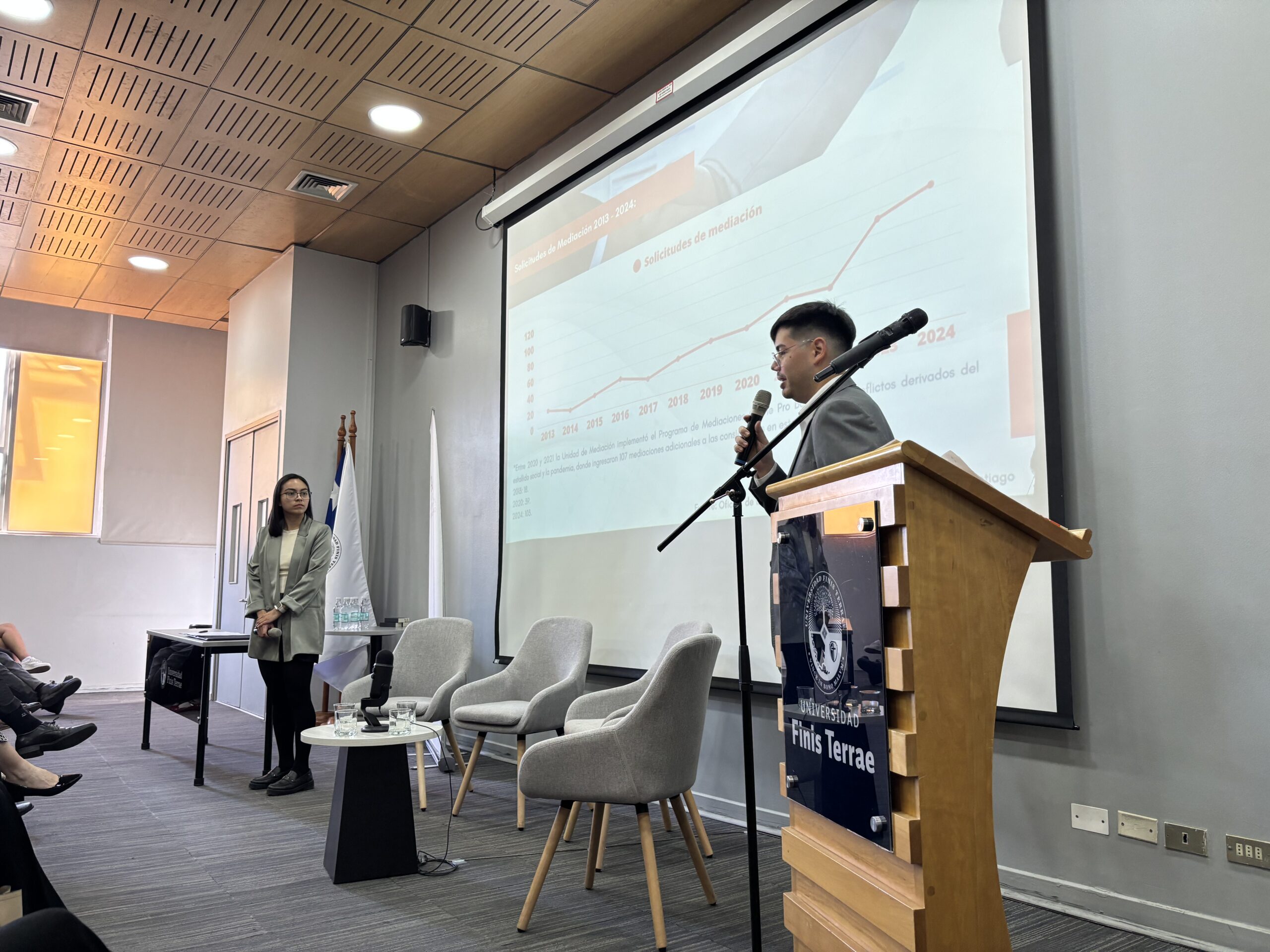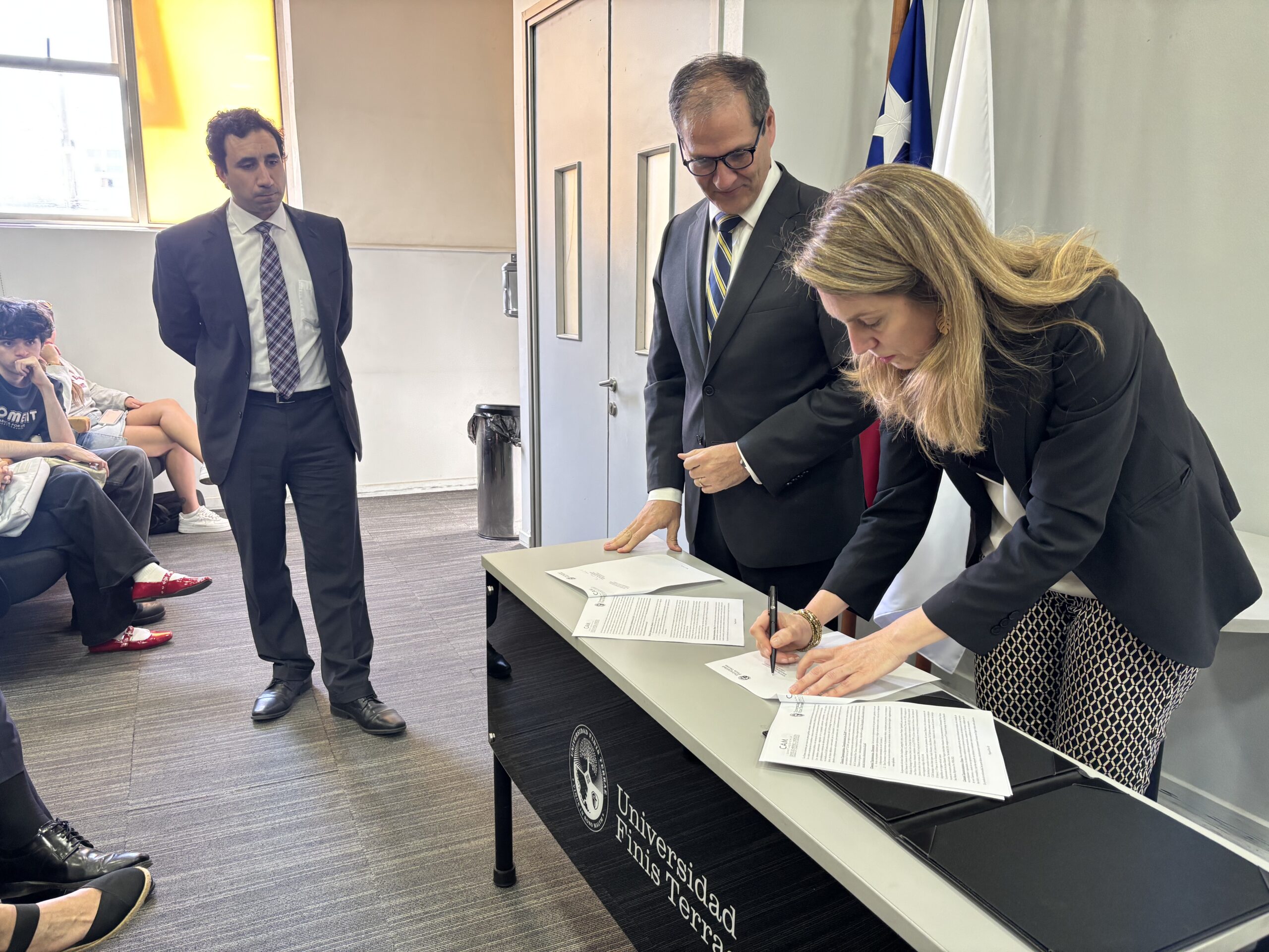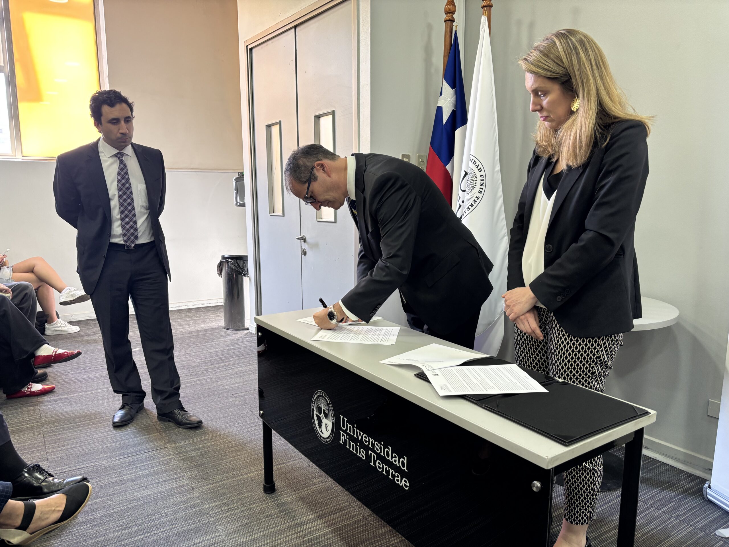 29 de octubre de 2025. En octubre de 2025, el Centro de Arbitraje y Mediación (CAM) de la Cámara de Comercio de Santiago (CCS) y la Facultad de Derecho de la Universidad Finis Terrae (UFT) suscribieron electrónicamente un convenio de colaboración académica y pasantías, con la finalidad de promover y desarrollar los métodos adecuados de resolución pacífica de conflictos entre la comunidad jurídica universitaria. El convenio fue presentado en el «Conversatorio CAM Santiago UFT: Colaboración Académica para la Enseñanza y Difusión del Arbitraje y de la Mediación».
