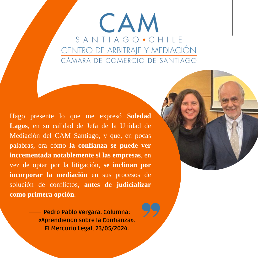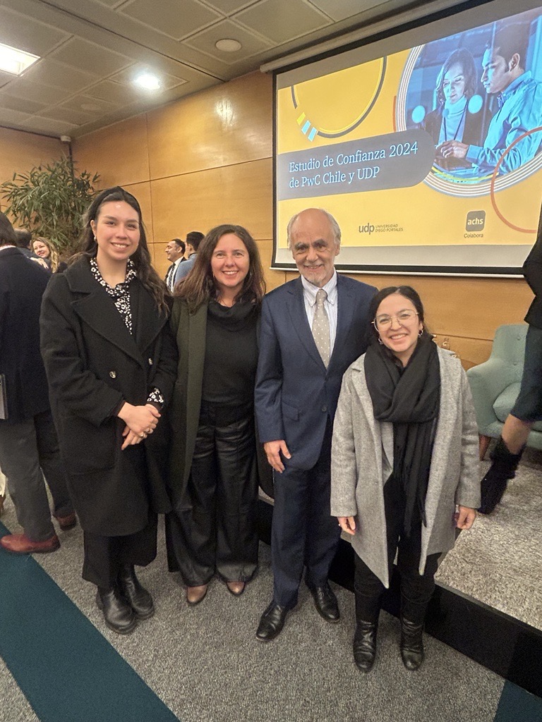 22 de mayo de 2024. El pasado martes 14 de mayo María Soledad Lagos Ochoa, Jefa de la Unidad de Mediación, junto a las abogadas Mariana Fernández Galaz y Paulina Pino Burgués (case managers), asistieron como público al desayuno en que se presentaron los resultados del Estudio de Confianza 2024 elaborado por PwC Chile, en conjunto con la Universidad Diego Portales (UDP) y con la colaboración de la Asociación Chilena de Seguridad (Achs).