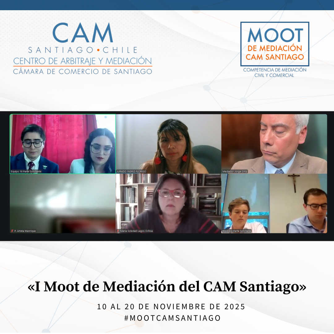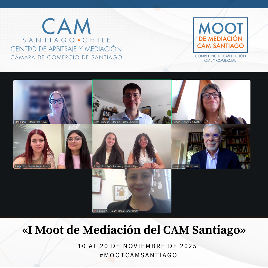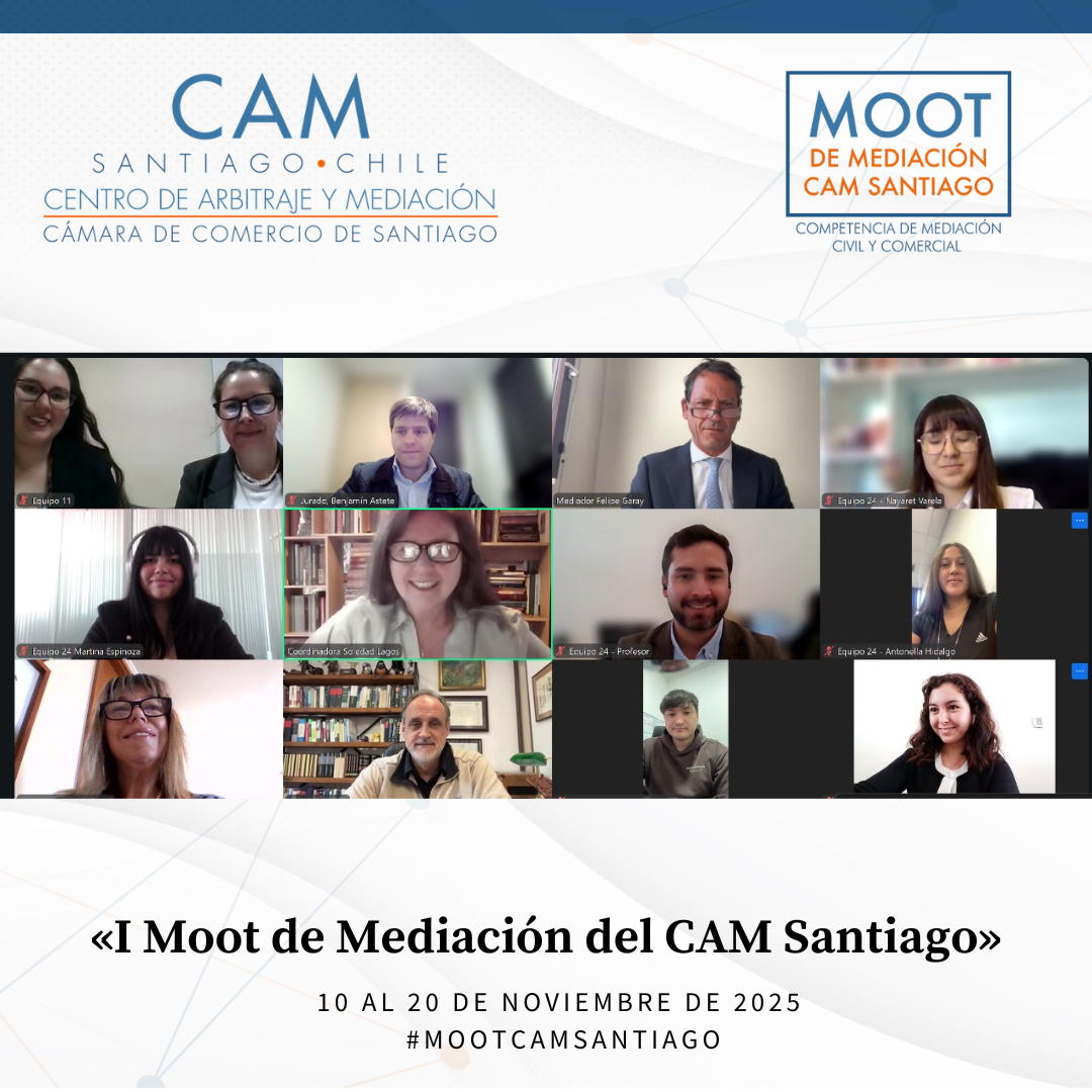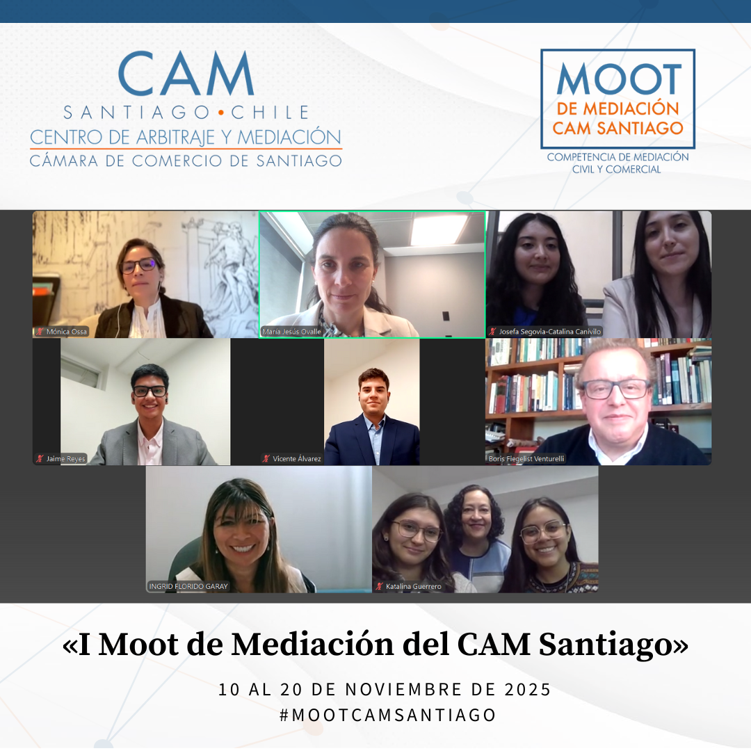 Durante el mes de noviembre de 2025 se llevó a cabo el Primer Moot de Mediación Civil y Comercial del CAM Santiago, cumpliéndose así un anhelo de años del Centro: promover la mediación entre estudiantes de Derecho de todo el país. Esta iniciativa tuvo como propósito fomentar el estudio y la práctica de la mediación como un proceso eficaz para la prevención, gestión y resolución de conflictos, impulsando en los futuros profesionales habilidades avanzadas en negociación, escucha activa, comunicación efectiva y cultura de acuerdo.