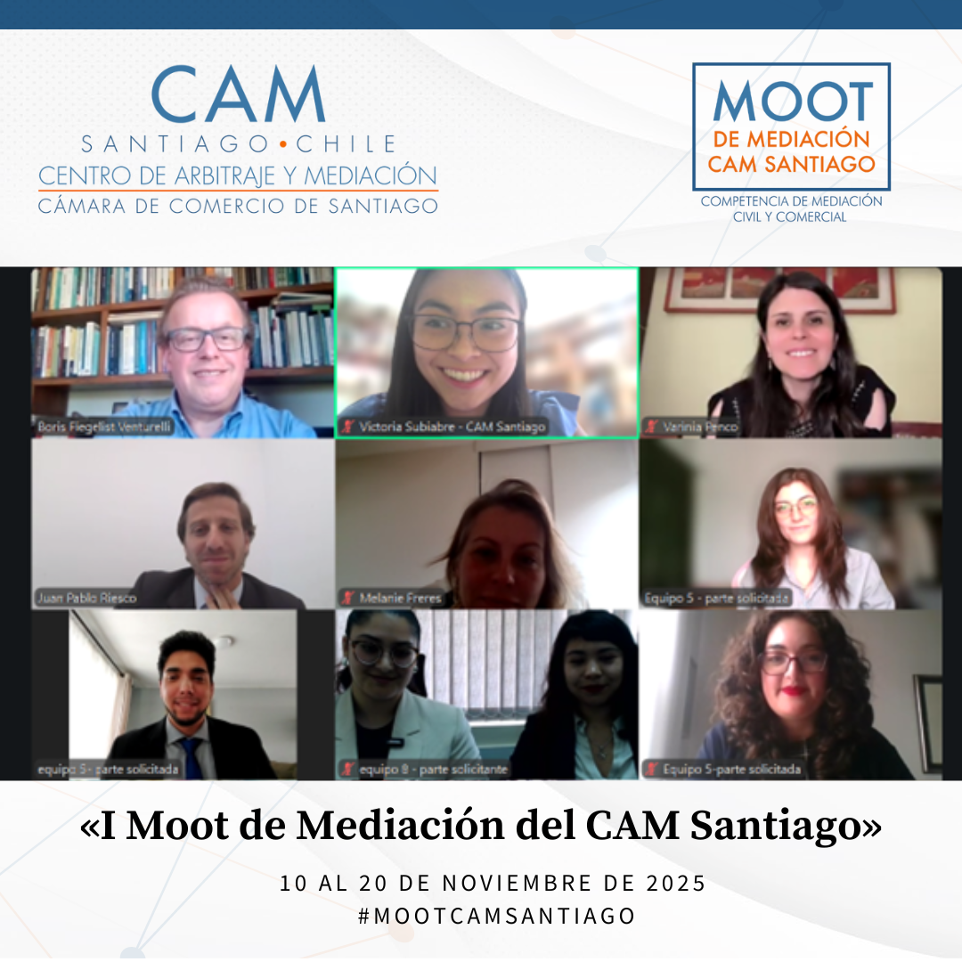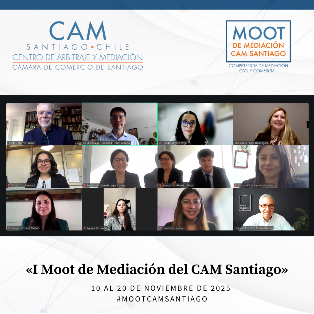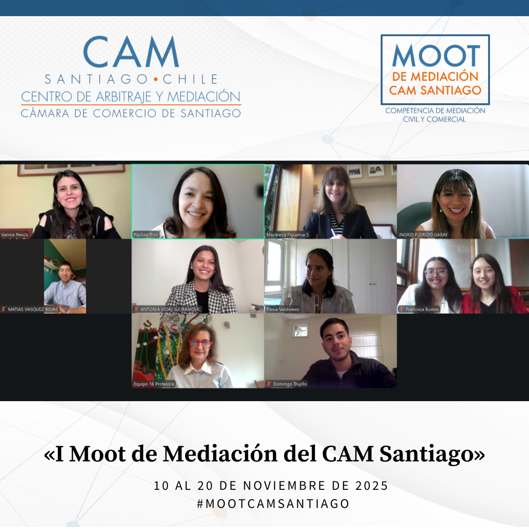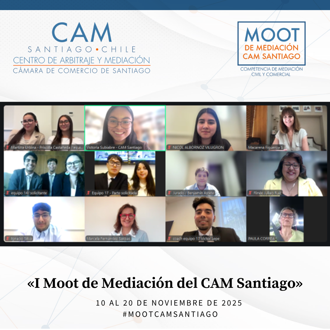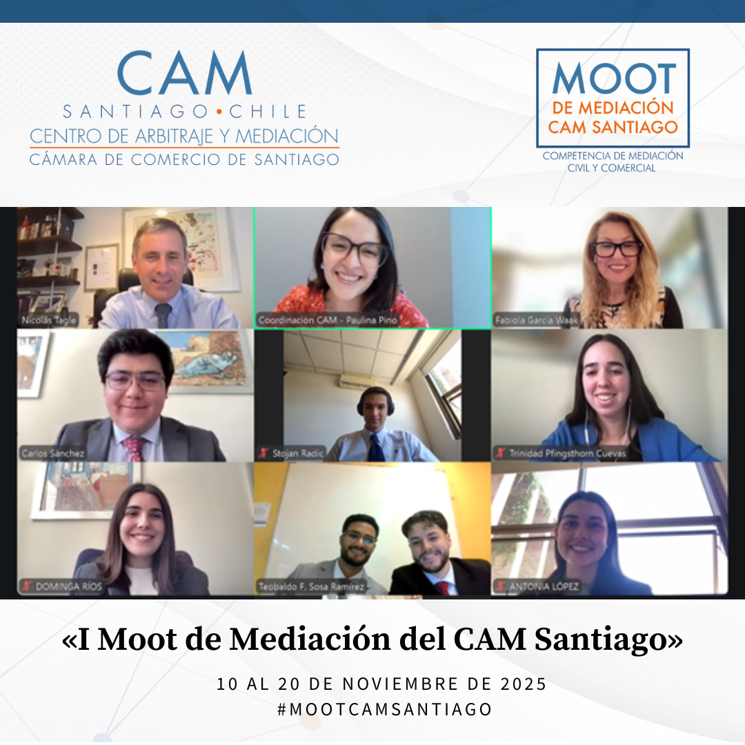Durante el mes de noviembre de 2025 se llevó a cabo el Primer Moot de Mediación Civil y Comercial del CAM Santiago, cumpliéndose así un anhelo de años del Centro: promover la mediación entre estudiantes de Derecho de todo el país. Esta iniciativa tuvo como propósito fomentar el estudio y la práctica de la mediación como un proceso eficaz para la prevención, gestión y resolución de conflictos, impulsando en los futuros profesionales habilidades avanzadas en negociación, escucha activa, comunicación efectiva y cultura de acuerdo.