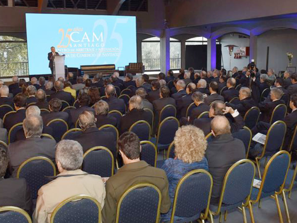 El Centro de Arbitraje y Mediación de la Cámara de Comercio de Santiago - CAM Santiago - celebró su vigésimo quinto aniversario con la realización de una Jornada de Reflexión “25 años del Arbitraje Institucional en Chile” que contó con la participación de más de 200 juristas del país e importantes invitados extranjeros del mundo del arbitraje.