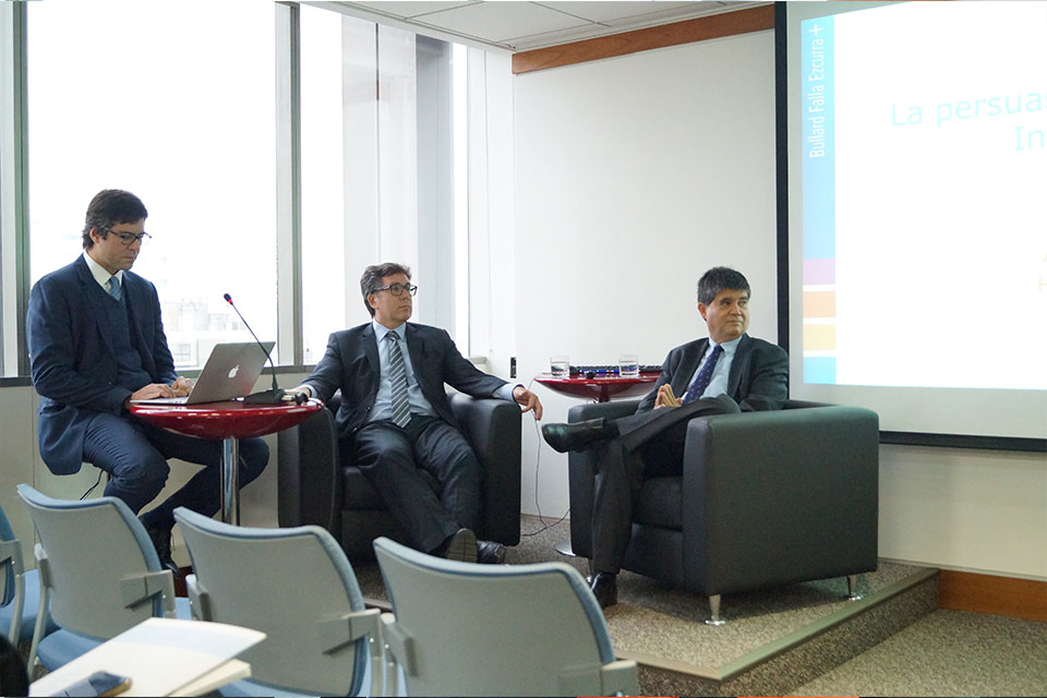 El encuentro, moderado por Francesco Campora, estuvo liderado por los árbitros peruanos Alfredo Bullard y Huáscar Ezcurra, ambos Máster en Derecho por la Universidad de Yale, abogados de la Pontificia Universidad Católica del Perú y socios en Bullard Falla Ezcurra+.