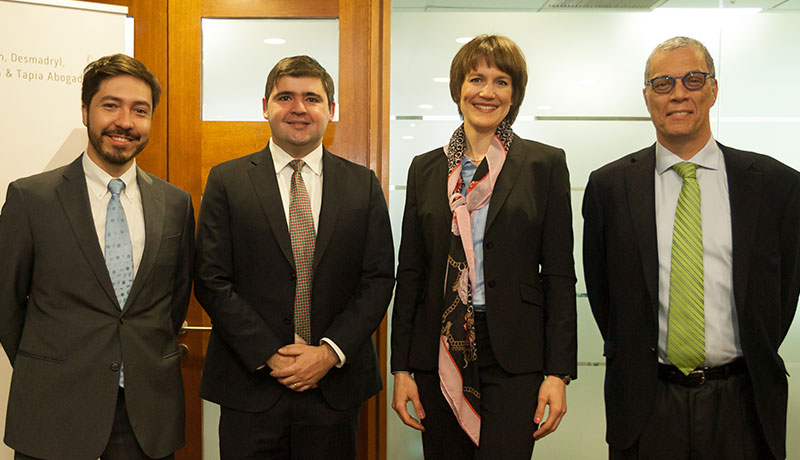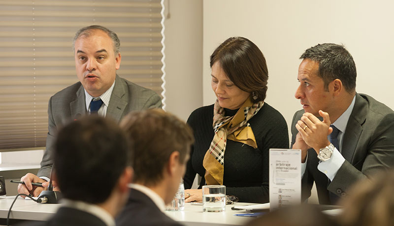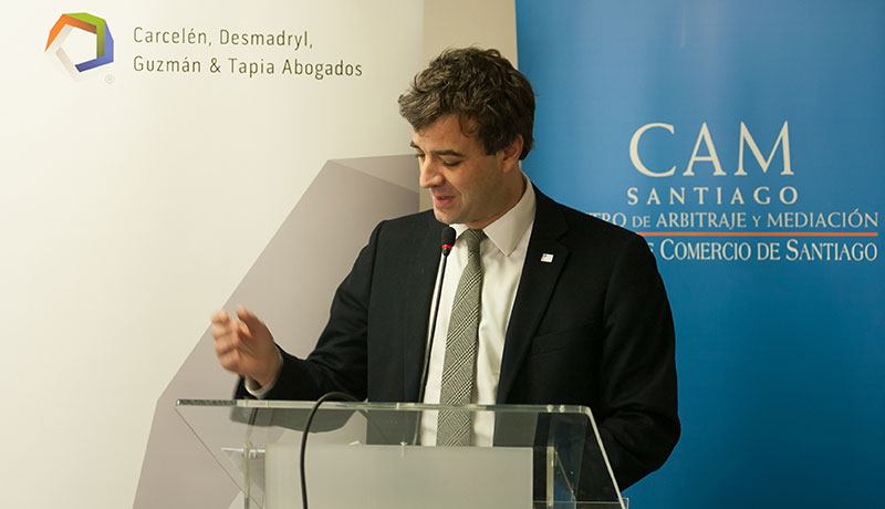 La actividad organizada junto a los estudios Carcelén, Desmadryl, Guzmán & Tapia y Pérez Bustamante & Ponce y moderada por Jerónimo Carcelén, contó con las exposiciones de Loreto Silva (Consejera del CAM Santiago), Juan Manuel Marchán y Eduardo Ugarte, además de la presencia de Carlos Soublette (Gerente General de la Cámara de Comercio de Santiago) y las palabras de Homero Arellano Lascano (Embajador de Ecuador en Chile, quien destacó la promoción conjunta de la Embajada y de la Cámara de Comercio de Santiago de la seguridad jurídica, de las inversiones y de las visitas de grupos empresariales), Juan José Ossa Santa Cruz (Subsecretario de Justicia del Ministerio de Justicia y Derechos Humanos), Herman Chadwick (Presidente del Consejo del CAM Santiago) y Macarena Letelier (Directora Ejecutiva del CAM Santiago).