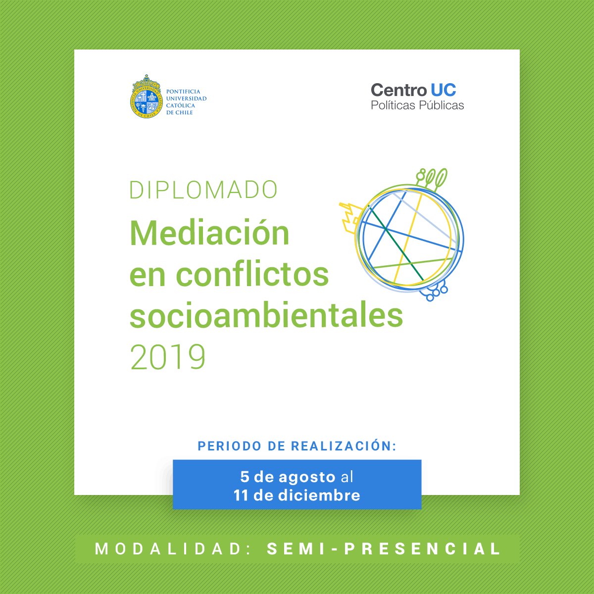 En agosto de este año la Facultad de Derecho de la Pontificia Universidad Católica de Chile dio inicio a su 1° Diplomado en Mediación en Conflictos Socioambientales. El programa tiene como propósito “contribuir a que profesionales y diferentes actores de la sociedad, puedan comprender los escenarios de conflictividad socioambiental y adquirir herramientas que les permitan no sólo encontrar una solución a determinado conflicto, sino que también, transformar las relaciones a largo plazo de los actores involucrados”.