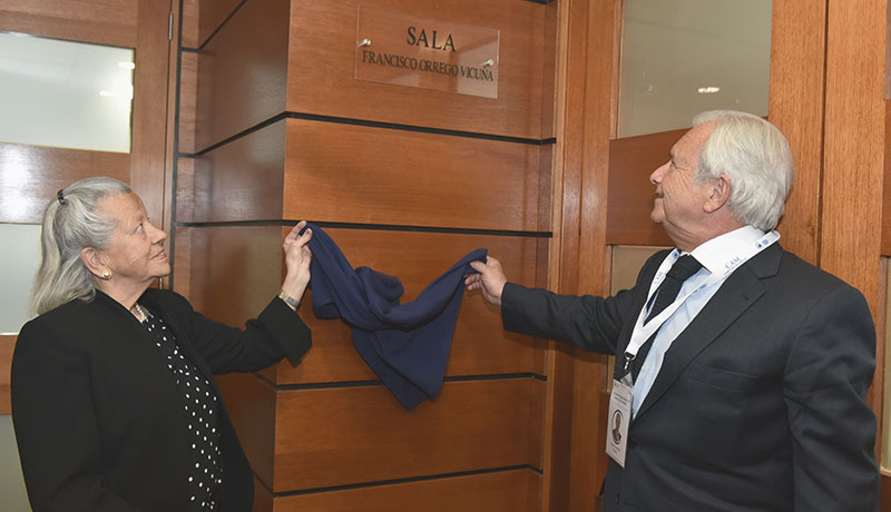 Finalizado el evento, el Centro de Arbitraje y Mediación de la Cámara de Comercio de Santiago decidió renombrar una de sus salas de audiencias en homenaje al jurista chileno.