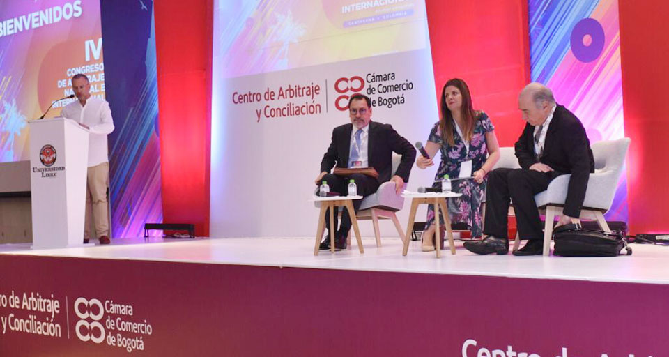 Entre el miércoles 4 y el viernes 6 de marzo, destacados profesionales del área del arbitraje nacional e internacional viajaron a Colombia para participar en el 4° Congreso de Arbitraje Nacional e Internacional del Centro de Arbitraje y Conciliación de la Cámara de Comercio de Bogotá, donde también asistieron reconocidos abogados de Colombia y Estados Unidos.