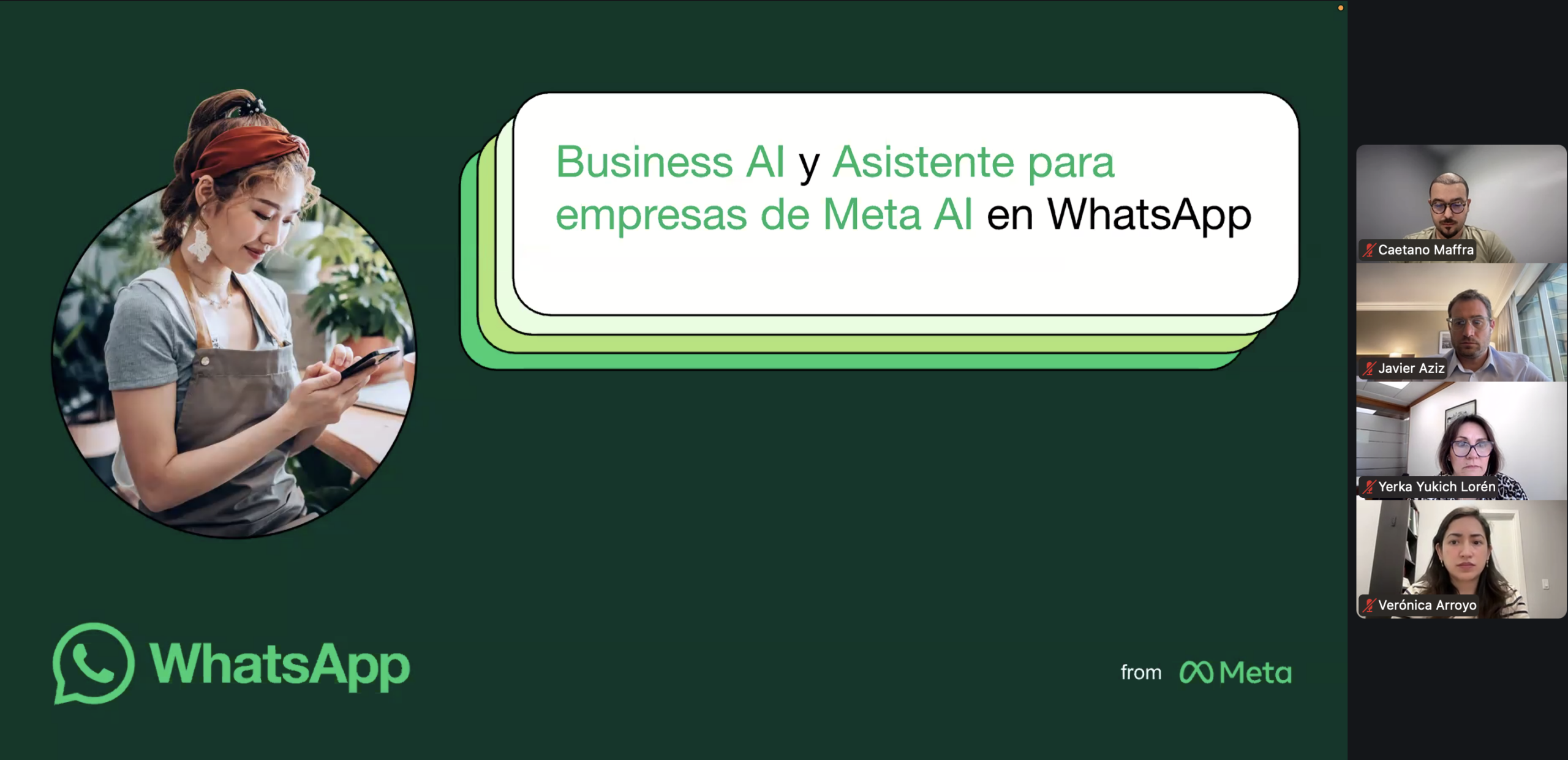 La primera es Business AI para WhatsApp Business, un asistente de IA que permite a las empresas responder consultas de clientes las 24 horas, los 7 días de la semana, recomendar productos según el catálogo del negocio y transferir la conversación al equipo humano cuando sea necesario. Su configuración no requiere conocimientos técnicos y se activa directamente desde la app de WhatsApp Business en minutos.