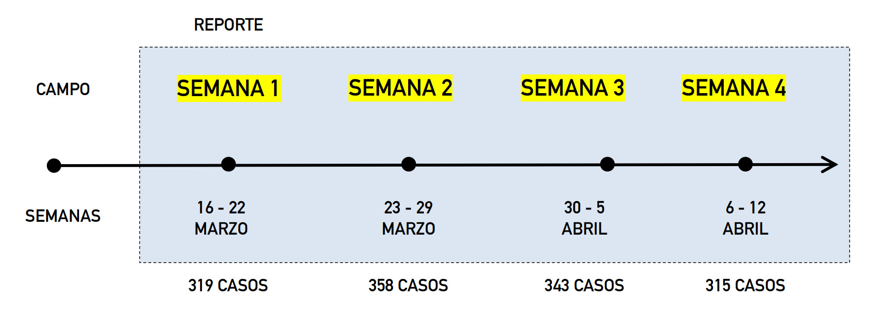 300 casos (50% en santiago y 50% en regiones II, IV, V, VI y VIII) por semana.