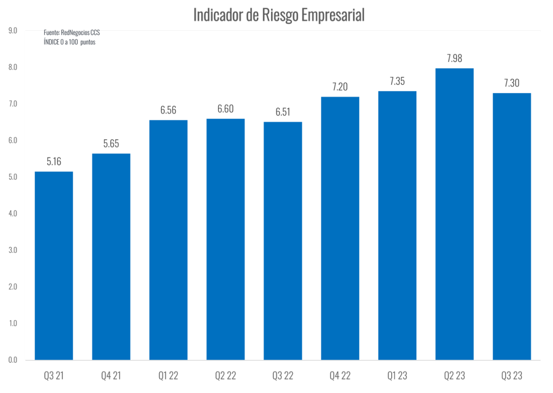 Con ello, el indicador de riesgo empresarial pasó de 7,98 puntos en el trimestre abril junio a 7,30 puntos en el tercer cuarto del año.
