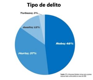 Al analizar la naturaleza de los ilícitos y el modus operandi, se observa que los delitos de mayor connotación son aquellos que afectan directamente al patrimonio de las empresas. El robo representa el 48% de los casos, seguido por el hurto, con un 37%. Los delitos de mayor violencia, como el asalto, constituyen un 12%, en tanto que los turbazos, tienen una menor incidencia en este formato (3%), una cifra marginal pero cualitativamente relevante por su impacto operativo y psicológico.
