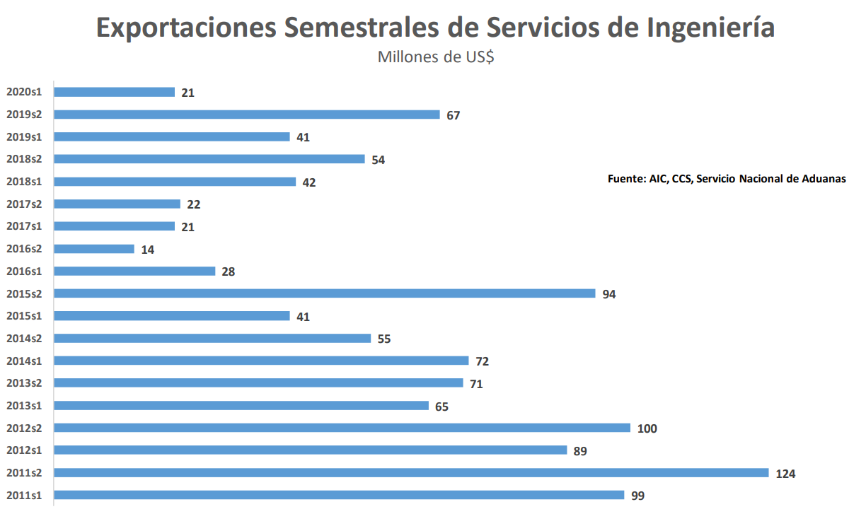 Un estudio realizado por la Asociación de Empresas Consultoras de Ingeniería (AIC) y la Cámara de Comercio de Santiago (CCS), muestra un retroceso de un 49% en las exportaciones de servicios de ingeniería en el primer semestre de 2020 respecto al mismo período del año anterior.