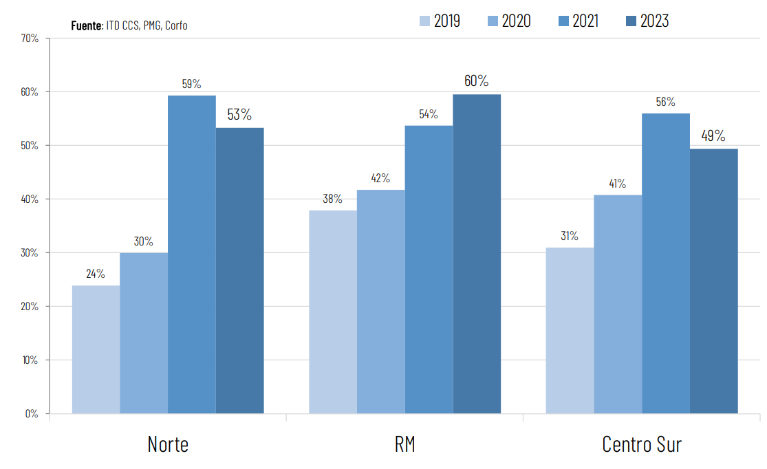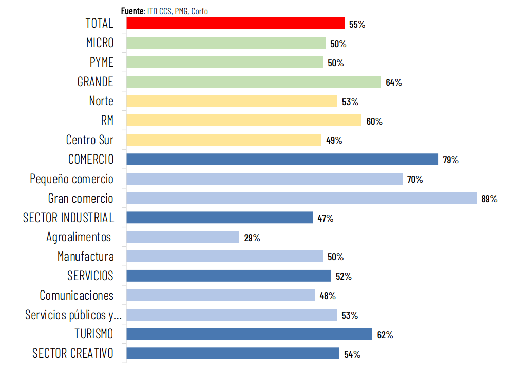 Revisa estadísticas como % de empresas que usa E-Commerce, % de las ventas que se realizan por medios digitales año 2023. % que usa Marketing Digital, entre otros.