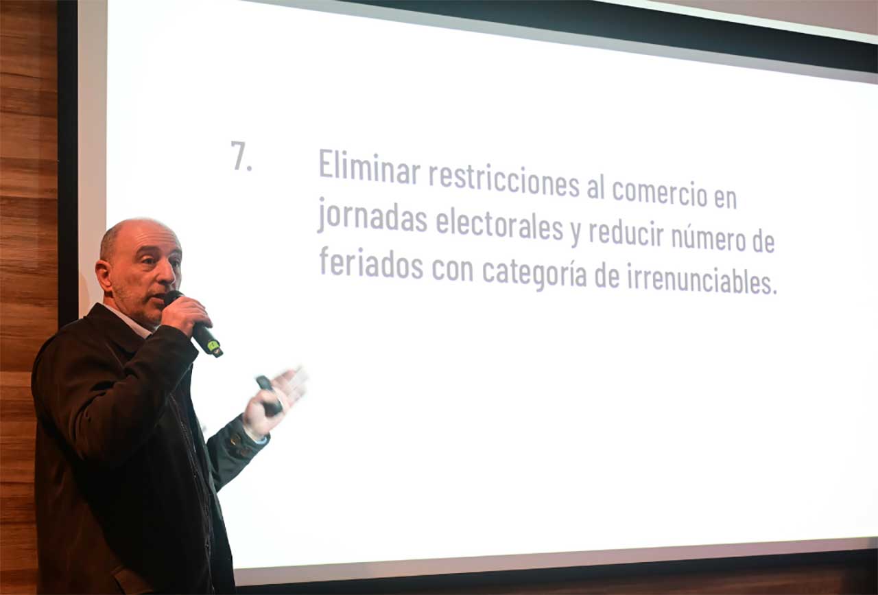 La jornada fue presentada por nuestro gerente general, Carlos Soublette, y contó con la exposición de George Lever, gerente de Estudios CCS, quien compartió las principales propuestas del gremio a las candidaturas presidenciales en materia de empleo y comercio.
